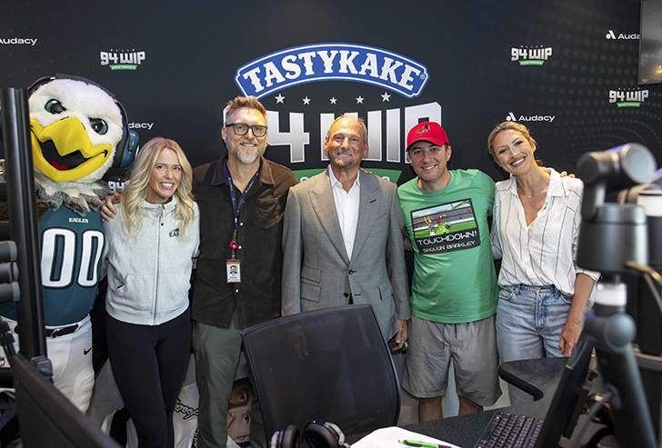 Audacy's SportsRadio 94WIP’s Eagles Radiothon Sets Record $619,000+ For Autism Foundation THE MOUTH, SEPTEMBER 8TH, 2025 - Audacy announced that its annual Eagles Radiothon, which aired live on SportsRadio 94WIP (WIP-FM) last week, raised a record-breaking $610,000 for the Eagles Autism Foundation. The eleven experiences donated by 94WIP alone generated $40,000 in support of the foundation's mission. The radiothon aired from August 27 through August 28 during the “94WIP Morning Show” hosted by Joe DeCamara and Jon Ritchie; “94WIP Middays” hosted by Hugh Douglas and Joe Giglio; and “94WIP Afternoons” hosted by Ike, Spike, and Fritz. All proceeds from the auction will support the Eagles Autism Foundation’s mission to raise funds for innovative autism research and care programs. “Each year, I’m astonished by the generosity of our listeners, fans, and partners during the Eagles Radiothon,” said David Yadgaroff, Audacy Senior Vice President and Market Manager, Audacy Philadelphia. “It continues to drive us year after year to make a meaningful difference. The whole SportsRadio 94WIP family is proud to help raise money for such an important cause." Photo L-R: SWOOP, Eagles Autism Foundation Executive Director Ryan Hammond, SportsRadio 94WIP Morning Show host and former Eagle Jon Ritchie, Executive Chairman and Owner Firstrust Bank and Trustee of the Green Foundation Richard Green, SportsRadio 94WIP Morning Show Host Joe DeCamara, and Eagles Sideline Reporter and SportsRadio 94WIP Host Devan Kaney