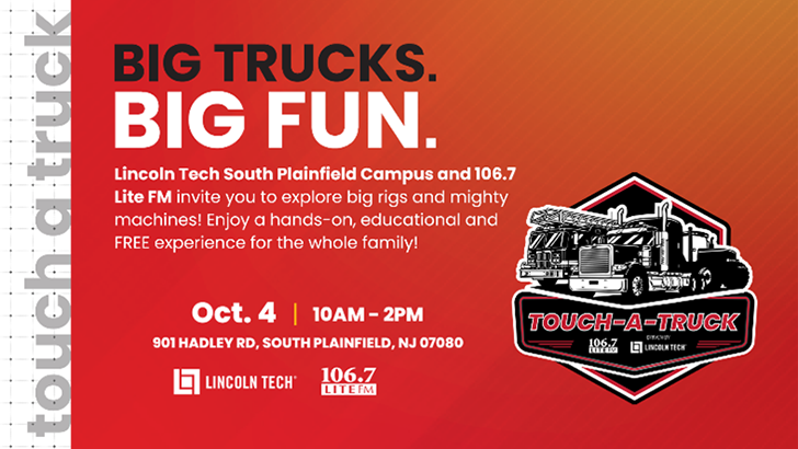 EVENTS: iHeart New York’s 106.7 LITE FM And Lincoln Tech Present Touch-A-Truck JOCKLINE, OCTOBER 3RD, 2025 – Get ready for an unforgettable family-friendly event – Touch-A-Truck! iHeartMedia New York’s 106.7 Lite FM morning show “Cubby and Christine in the Morning” and Lincoln Tech will host a family-friendly event, where children and adults alike can explore, climb, and discover BIG trucks up close. From construction vehicles to emergency trucks, this hands-on experience is guaranteed to bring smiles and excitement. Plus, enjoy a variety of food trucks on-site, serving up delicious bites all day long. Saturday, October 4 10:00 AM – 2:00 PM at Lincoln Tech It’s not just about big trucks — it’s about big fun! This community event gives families a chance to interact with impressive vehicles while enjoying a safe and engaging day together. Kids climbing inside trucks and honking horns. Families taking photos with massive vehicles. Smiling faces, fun activities and community spirit.