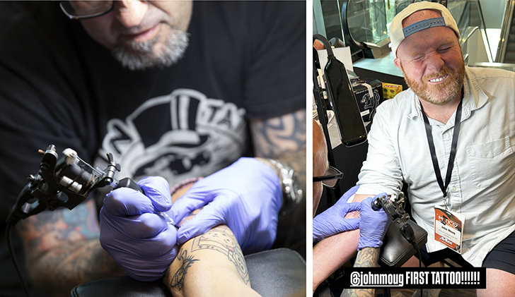 SNAPS: John Moug Gets His First Tattoo At MSBC THE MOUTH, AUGUST 13TH, 2025 - As you may have heard, there were a lot of 'firsts' at MSBC 37 In Austin this year including our first-ever 'Tattoo Parlor.' Nearly 20 attendees signed up for an array of radio-themed art such as a microphone, portable radio, etc., but at least one person showed up for their first-ever tattoo. John Moug, of Audacy's B96 Chicago's Moug & Karla Show, arrived at the parlor all smiles, but grimaced just a bit as he was penned with his first tat. He and others were easily spotted in the hallways with bandages over their new design. Based on feedback, you can look for the tattoo parlor to return to MSBC 38 in ..... (oops, coming soon) - Watch John's experience HERE Photo at right courtesy of KARLA, photo at left from MEL ROSE @stuckwithmel